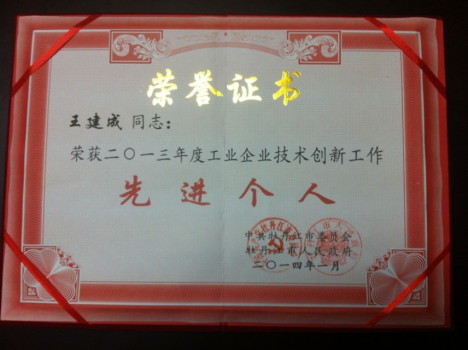 为树立榜样,市委市政府决定,授予一批工业立市先进单位,其中,牡丹江金盟电器有限公司获此殊荣。同时,王建成总经理被授予“技术创新先进个人”称号。